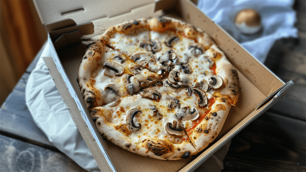 - Een pizzadoos om 1 pizza in mee te nemen
