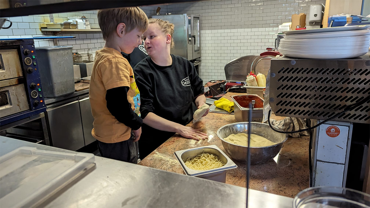 Met jouw vriendjes en vriendinnetjes kom je een pizza-party houden bij Vet Gezond! We beginnen met het eten van (cup)cake en het uitpakken van de cadeautjes. Jullie krijgen daarna allemaal een schortje aan en gaan met elkaar de lekkerste pizza’s van Nederland bakken! We leggen uit hoe we de pizza’s gaan maken. Daarna kunnen we aan de slag met het uitrollen van het deeg en het beleggen van jouw pizza met je favoriete toppings! Ga je voor een gewone pizza of een pizzabeer? Je mag 2 pizza’s maken. Een om op te eten met het feestje en één om mee naar huis te nemen in een zelfversierde pizzadoos om aan papa en mama te laten proeven. De pizza is makkelijk even op te warmen thuis.